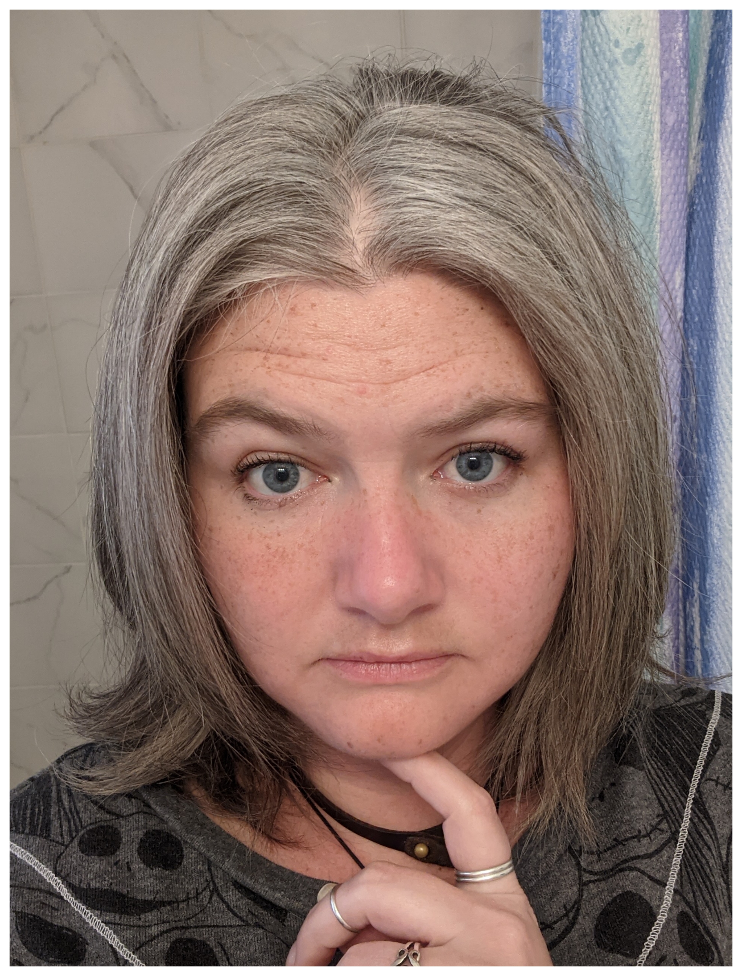 But I like my hair long. So I started growing out the grey. Some days, I’d struggle with the color, feeling that at 30-something I shouldn’t be grey. But that’s a societal thing. Not the truth. So… I kept going. I sometimes itch to dye it because I’m used to the constant change. But, I’ve come to like the color. I like the way it looks most days. I still get mistaken for being in my 20s (oddly enough) even though I’m 36. And it’s unique-ish.